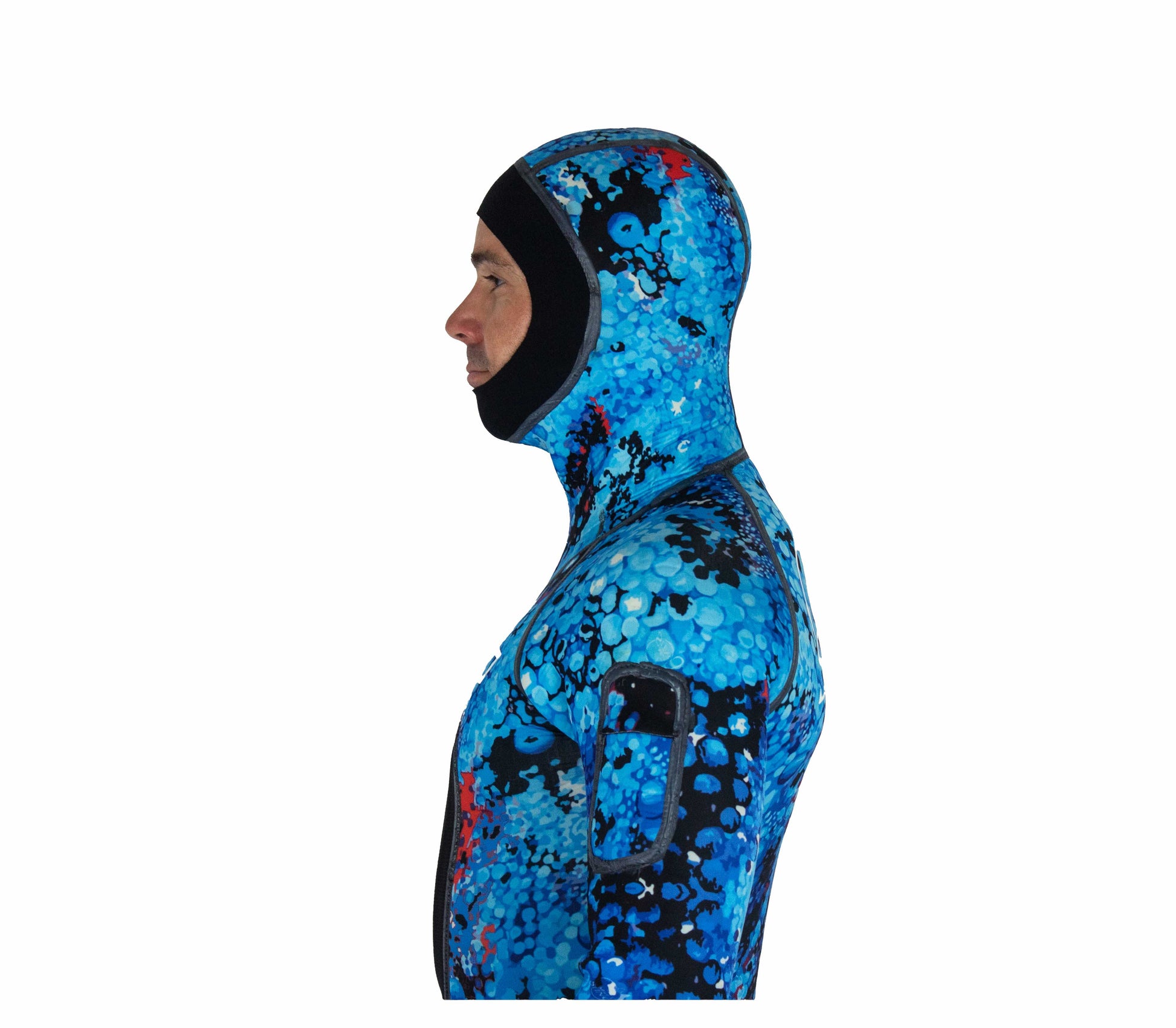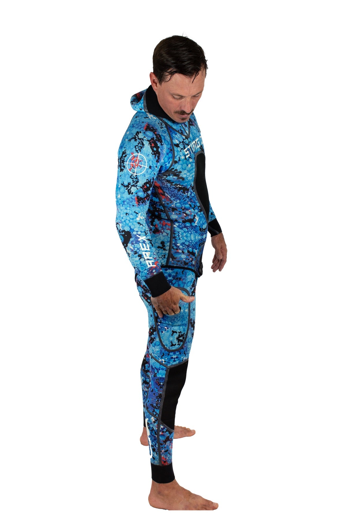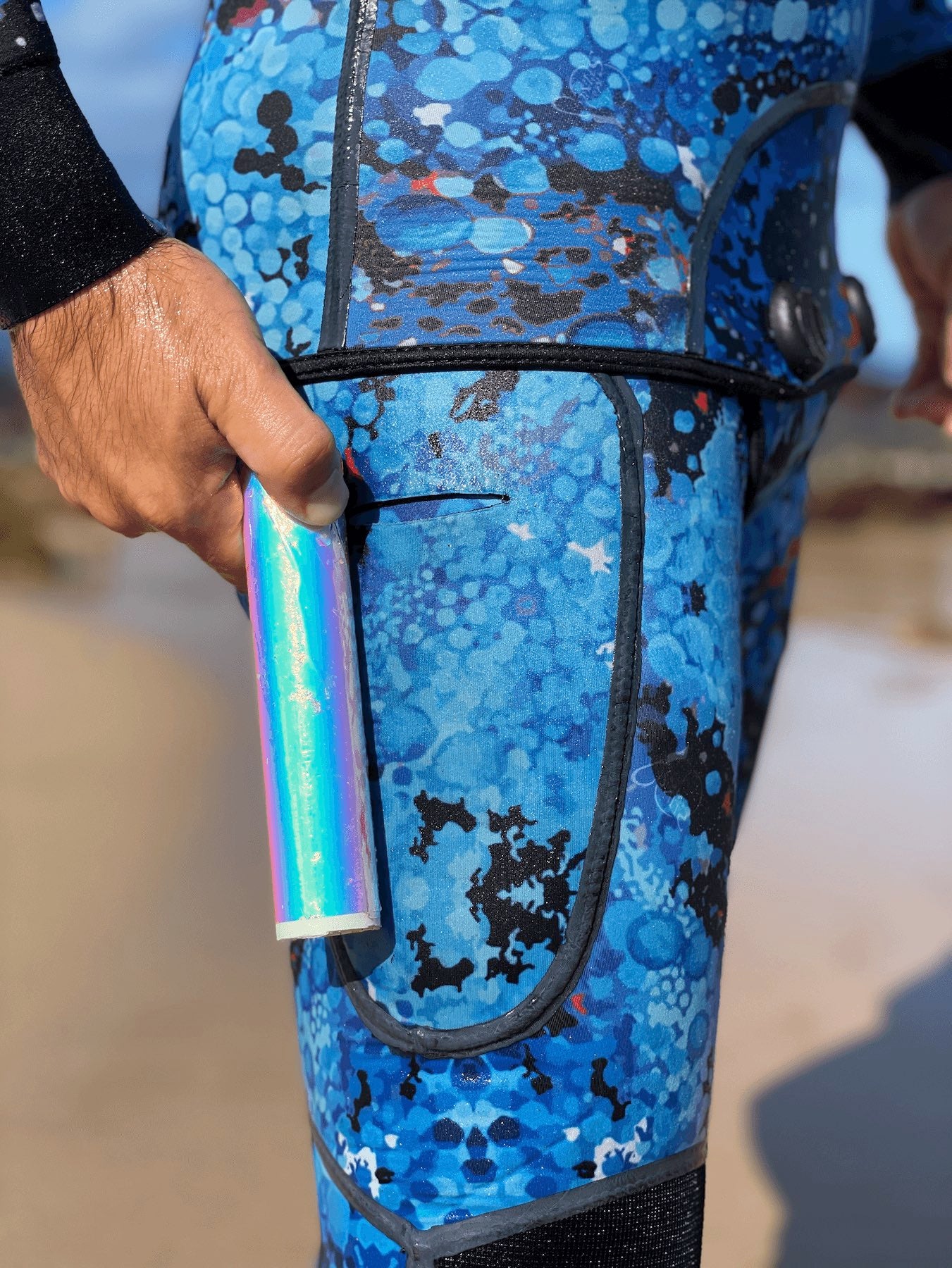 The Ultimate Spearfishing/ Freediving suit. The Apex Pro is hands down the most comfortable suit you will ever own. It is specially designed with the professional spearo in mind. Having the market’s largest and thickest chest loading pad, it allows any size gun to be loaded with ease and allows you to end the day without being bruised. Featuring a right hip pocket for flashers or a knife, and a shoulder pocket for a whistle or key, this suit is extremely functional. With our proprietary Indigo Reef © pattern, this suit is comfortable, striking, and definitely one of a kind.