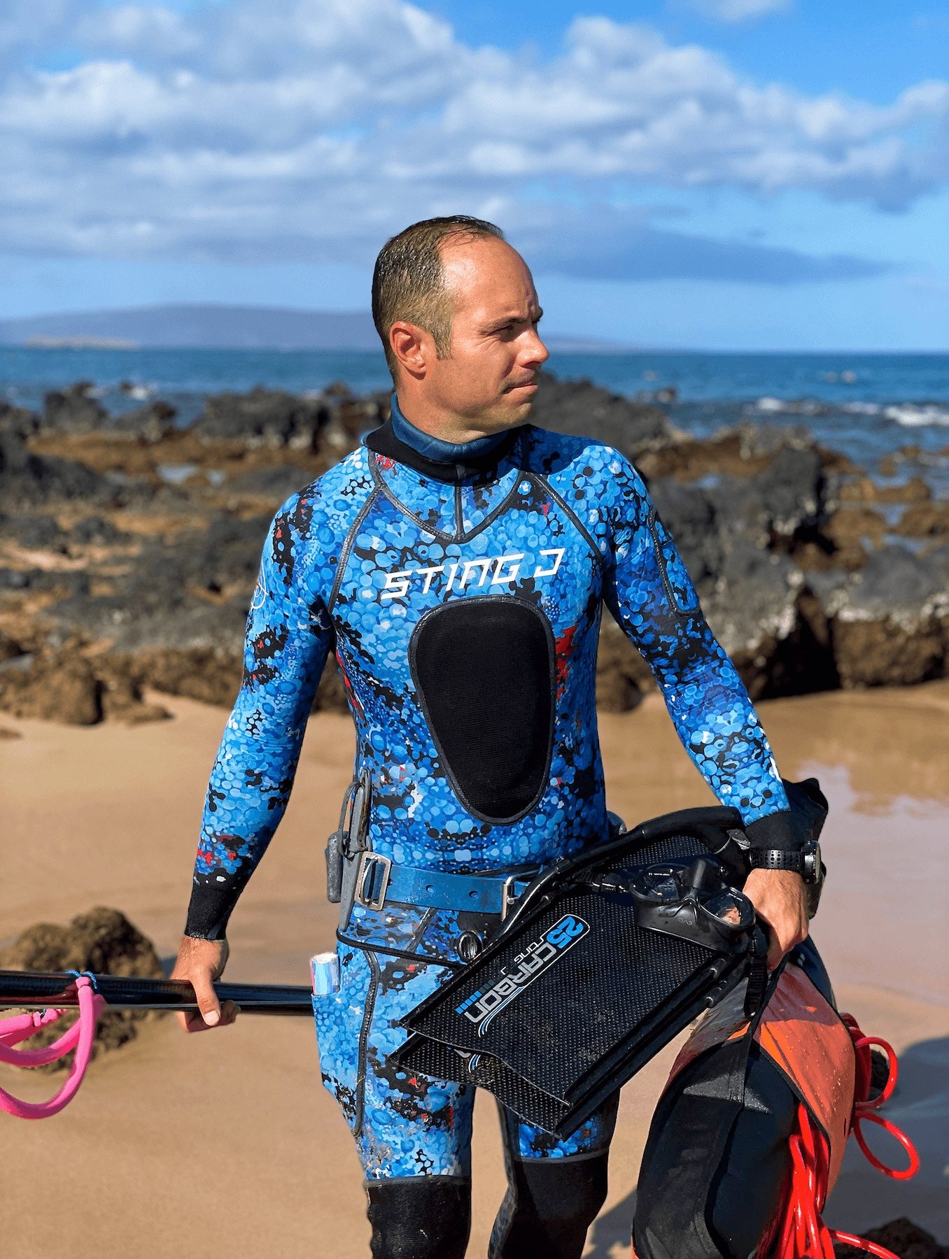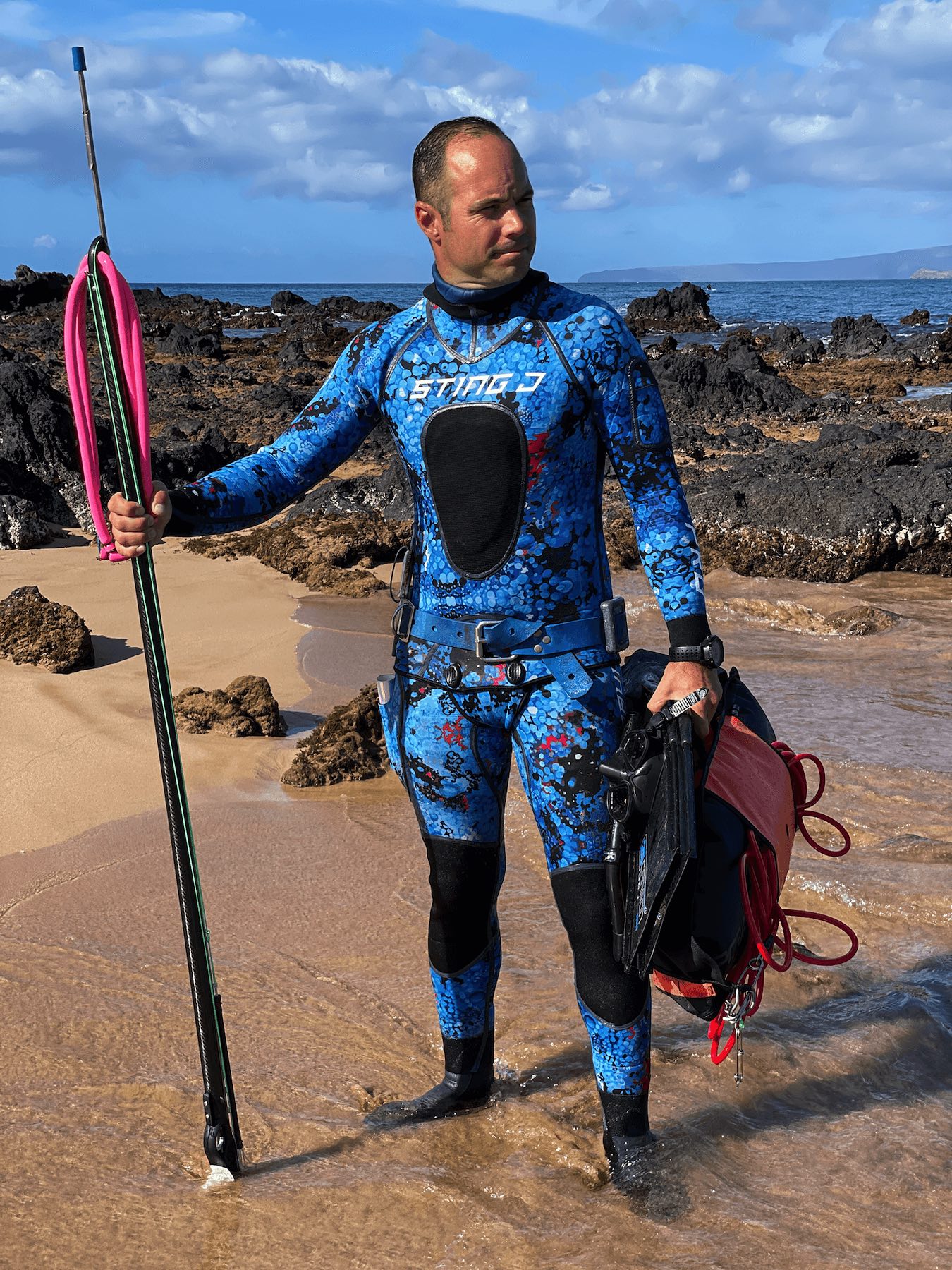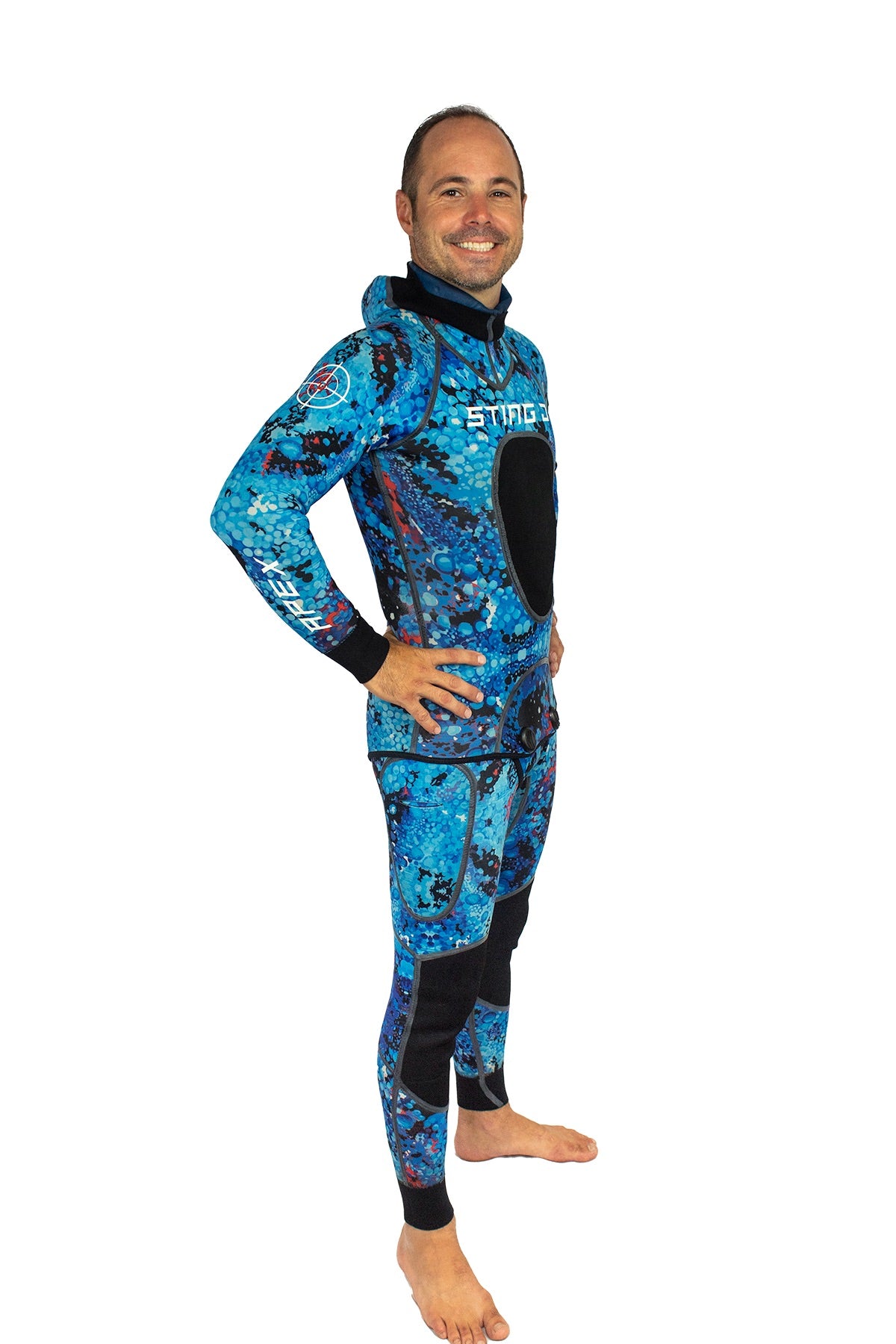 The Ultimate Spearfishing/ Freediving suit. The Apex Pro is hands down the most comfortable suit you will ever own. It is specially designed with the professional spearo in mind. Having the market’s largest and thickest chest loading pad, it allows any size gun to be loaded with ease and allows you to end the day without being bruised. Featuring a right hip pocket for flashers or a knife, and a shoulder pocket for a whistle or key, this suit is extremely functional. With our proprietary Indigo Reef © pattern, this suit is comfortable, striking, and definitely one of a kind.
